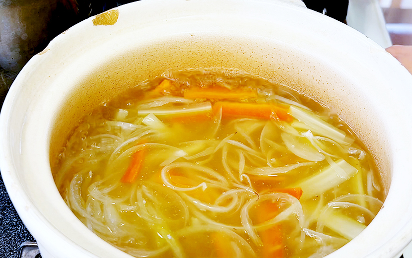参照レシピ 野菜の回し切り(玉ねぎ)野菜の切り方(短冊切り) 出汁の取り方(昆布煮出し)出汁の取り方(椎茸煮出し)